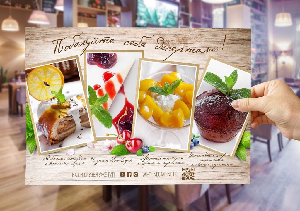 Digital-экраны, размещение в меню, брендирование столов, тейбл-тенты, POS-материалы и промо-акции внутри заведений.